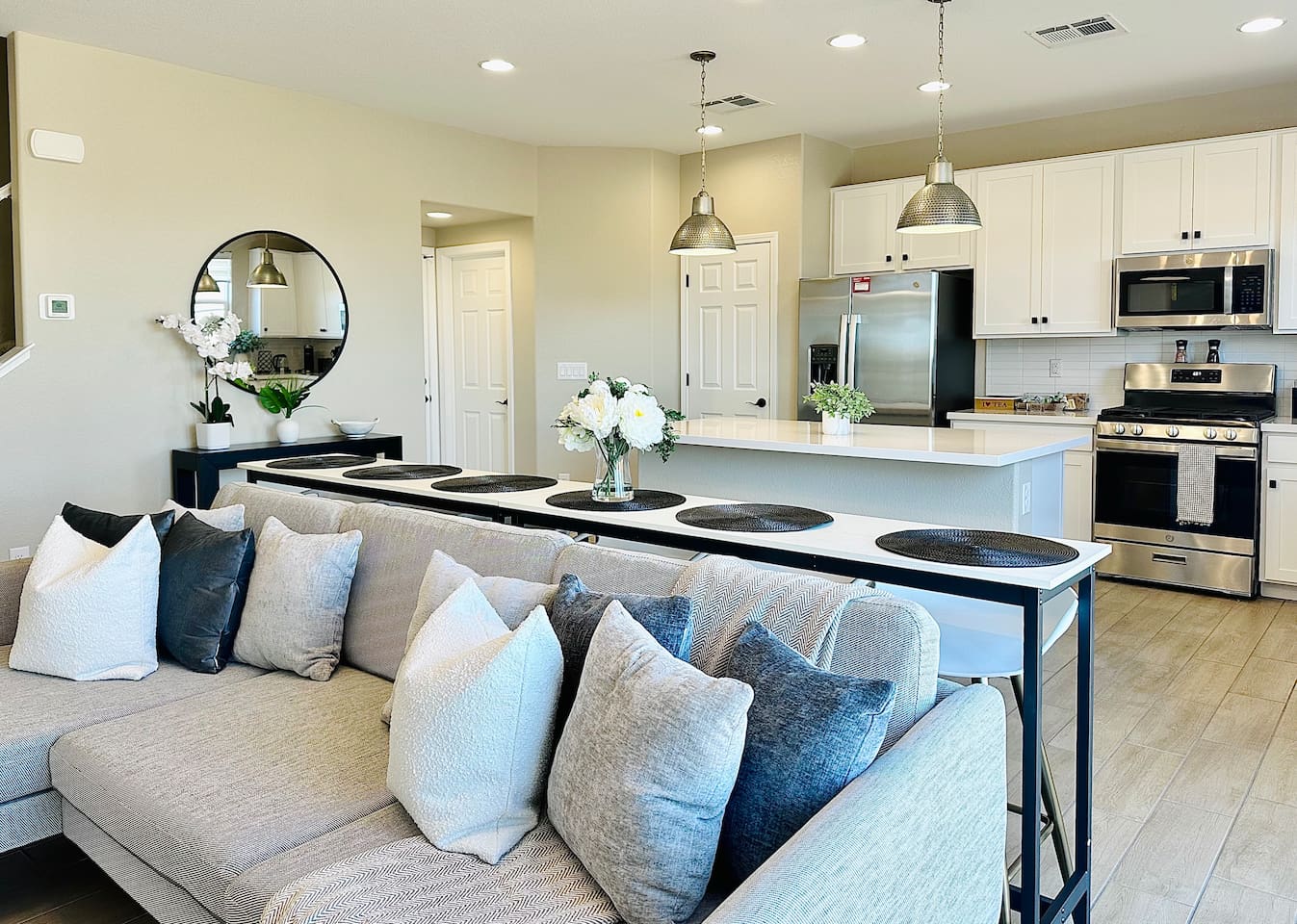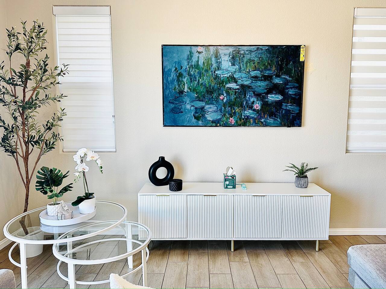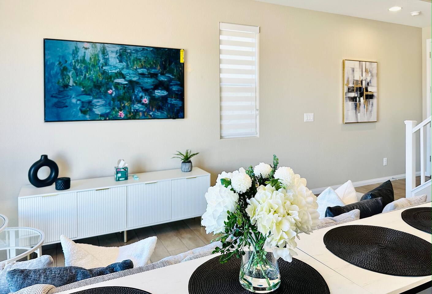 Kick back and relax in this calm, stylish space. ALL NEW furniture. 2024 build new house. Your family will be close to everything when you stay at this centrally-located place. Welcome to your Las Vegas retreat! Close to 15 freeway. this 3 bedroom 5 Beds home offers everything you need for your modern getaway. **Please note that this is a strict NO party house.** The space Traveling as a group doesn’t mean you have to give up luxury. Our chic 3-bedroom total of 5beds , 2.5-bathroom home can comfortably accommodate up to 8 guests. Beautiful décor all New Furniture's. 2024 build home. -King bed x1 -queen bed x1 -Single bed x2 -Sofa bed x1 -Air Mattress (upon request) Modern furnished kitchen and large island with refrigerator w/ filtered water, capsule cup of coffee and tea bag; gas stove, oven, dishwasher and microwave. Full laundry in house (washer and dryer). Living room has a 65 inch smart TV with access to all major streaming apps to watch your favorite show. WiFi is also provided onsite. Master room also have a 65 inch smart TV. Private two car garage. 15 minutes from Las Vegas Strip Local stores and restaurants are 2-5 mins away. Enjoy a stylish experience at this centrally-located place. ALL NEW furniture. Your family will be close to everything when you stay at this centrally-located place. Welcome to your Las Vegas retreat! 15 min to strip. this chic 3 bedroom 5 Beds home offers everything you need for your modern getaway. **Please note that this is a strict NO party house.** The space Traveling as a group doesn’t mean you have to give up luxury. Our chic 3-bedroom total of 5beds , 2.5 bathroom home can comfortably accommodate up to 7 guests. Beautiful décor all New Furniture's. 2024 build home. -Bedroom 1-King bed x1 -Bedroom 2-Queen bed x1 -Bedroom 3-Single bed x2 -Loft sofa bed X1 Modern furnished kitchen and large island with refrigerator w/ filtered water, capsule cup of coffee and tea bag; gas stove, oven, dishwasher and microwave. Full laundry in house (washer and dryer). Living room has a 65 inch smart TV , master bedroom has a 65 inch TV with access to all major streaming apps to watch your favorite show. WiFi is also provided onsite. Private two car garage. 15 minutes from Las Vegas Strip Local stores and restaurants are 2-5 mins away. CASINOS: Hard Rock(9.3 miles) Resorts World(10 miles) Caesar’s palace(9 miles) MGM Grand(8 miles) New York-New York(8.5 miles) Wynn(10 miles) Bellagio(9 miles) GOLF: DragonRidge Country Club(16 miles) Desert Willow Golf Course(8 miles) Chimera Golf Club(18 miles) Rio Secco Golf Club(8 miles) The revere golf club(10 miles) Cascata Golf Club(25 miles) Reflection Bay Golf Club(25 miles) SHOPPING: Las Vegas Premium Outlets South(4 miles) Fashion Show Mall(10 miles) The Forum Shops(9 miles) Miracle Mile Shops(9 miles) The Grand Canal Shoppes(10 miles) Town Square(6 miles) ATTRACTIONS: Red Rock Canyon(18 miles) Shark Reef Aquarium(8 miles) The Big Apple Coaster & Arcade(9 miles) High Roller(10 miles) Convention Center(8 miles) Madame Tussauds Las Vegas(10 miles) Fremont Street Experience(15 miles) The Colosseum(10 miles) Airport: Harry Reid International Airport(9 miles) *New community may have construction noise outside the house during the day. Guest access Whole house will be available Other things to note Self check-in with smart lock If you want early check-in or late check-out, please feel free to reach out 48 hours prior to your arrival date. Availability is dependent on prior or next guests. Unapproved late check-out is subject to $75 service charge. Any type of Smoking or vaping inside/outside the property is strictly prohibited. Any residual substance from smoking or vaping inside /outside the house will be subject to a fine or $450 to cover the additional cleaning costs. SECURITY CAMERAS ON SITE: *There is a video camera in the front door; on top of garage and backyard. Ring Door Bell camera in front entrance. Camera always recording for security reasons. We do have access to the videos in case there are discrepancies with number of guests, pets, etc. The community has strict noise ordinances. Please observe the quiet hours to respect the neighbors, quiet hour rules from 10pm to 7am. We DO NOT allow parties or any unauthorized guest. No visitors . If you ignore the local laws, house rules, or violate Airbnb policy, we will cancel the remainder of your stay and you will be asked to leave immediately without a refund. Any fines due to violation of local noise ordinances will be the responsibility of the guest. Missing or damaged items - Any evidence of willful or negligent loss or damage to the property, furnishings, decoration, landscaping, towels, linens or other items will be charged at direct replacement cost plus a fine of up to $200. Towels and linens - Guests are required to keep towels and linens in good condition. Towels and washcloths should not be used to remove makeup or for cleaning purposes. Any permanent stains on towels or linens will fall into the category of negligent damage. Each damaged towel will be charged $50, damage linens will be charged $100 Guests should NOT wash comforters or duvet comforters themselves as this can cause damage to those items and the washing machine. House Rules - Any evidence of a guest breaking posted house rules, including exceeding the occupancy listed by the guest on the reservation, parking restrictions, illegal substances or use of the property can result in a fine of up to $1000.00 and / or eviction from the property. This property is professionally cleaned and fully sanitized serviced for every guest who books with Us! The home will always be stocked with bath towels, body wash, shampoo, and conditioner. If you need anything additional during your stay, please feel free to reach out!